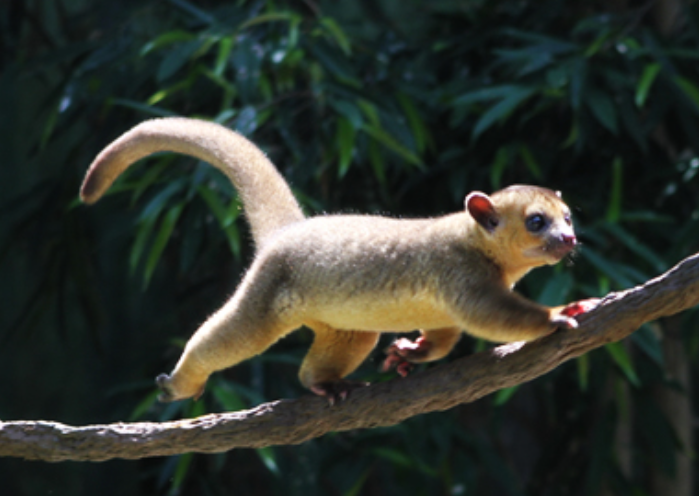 킨카주너구리의 무게는 평균 집 고양이(10파운드) 정도이지만 꼬리가 최대 2피트에 달할 수 있기 때문에 훨씬 더 길 수 있습니다. 킨카주너구리스는 긴 꼬리를 사용하여 나무에 오르는 것을 돕고, 먹고 자는 동안 안정을 위해 꼬리를 나뭇가지에 감쌉니다.